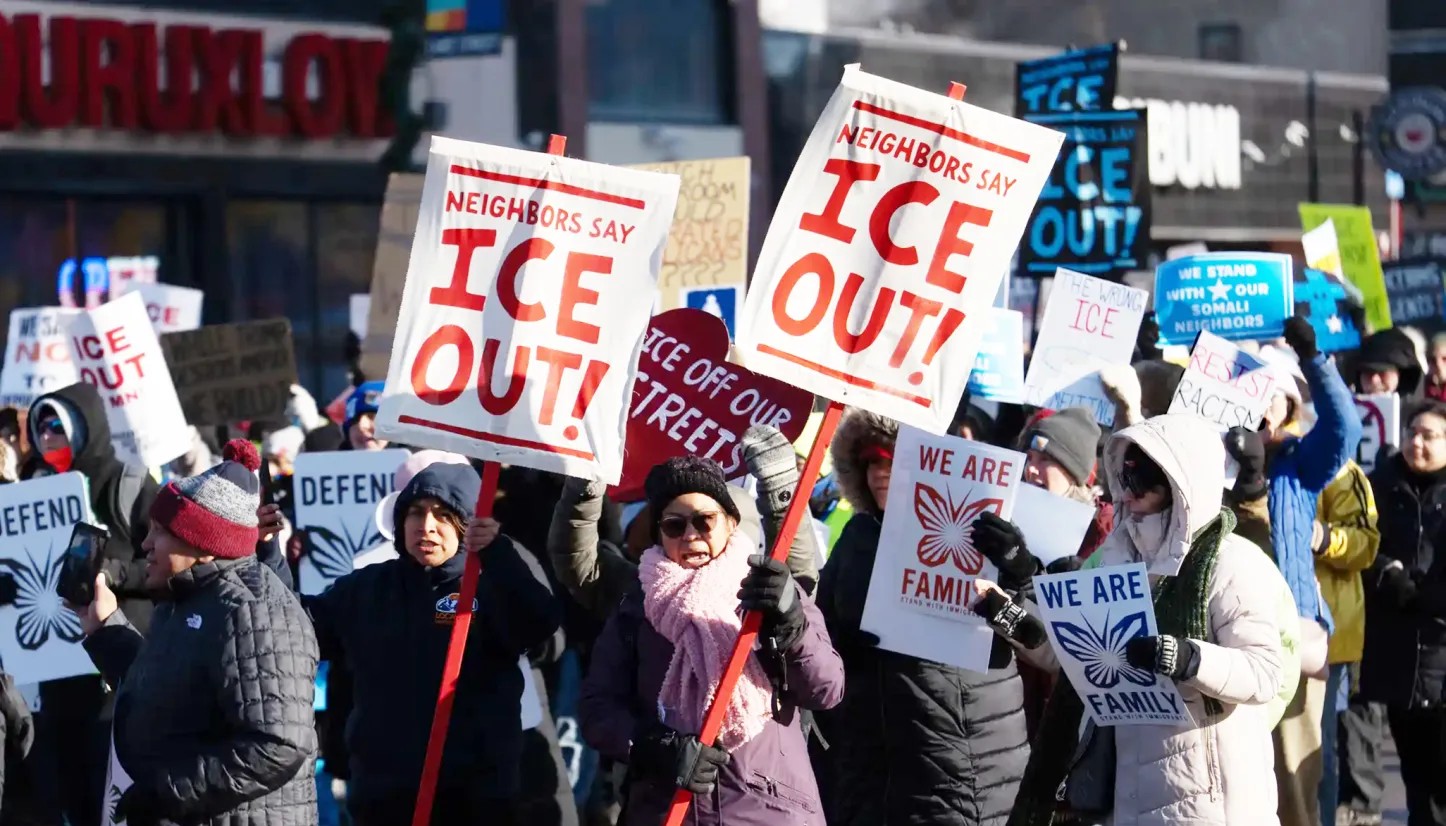 A Minneapolis, i lavoratori subiscono quotidianamente repressione e persecuzione. Gli agenti dell'Ice hanno lanciato gas lacrimogeni contro una famiglia di otto persone nella loro auto, tra loro un neonato che ha avuto bisogno di rianimazione cardiopolmonare. Hanno invaso scuole e sequestrato scuolabus per rapire bambini.  Liam Conejo Ramos, cinque anni, e suo padre sono stati rapiti mentre tornavano dall'asilo e rapidamente spediti dall'altra parte del Paese, in un campo di concentramento in Texas. I detenuti di questo stesso campo hanno protestato contro la loro incarcerazione al grido di «libertà».